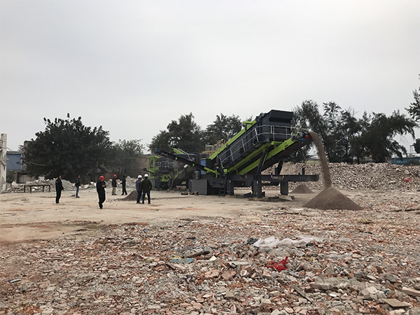今日,廣州客戶從鄭州華潔購買的建筑垃圾移動破碎站投產(chǎn)運營。